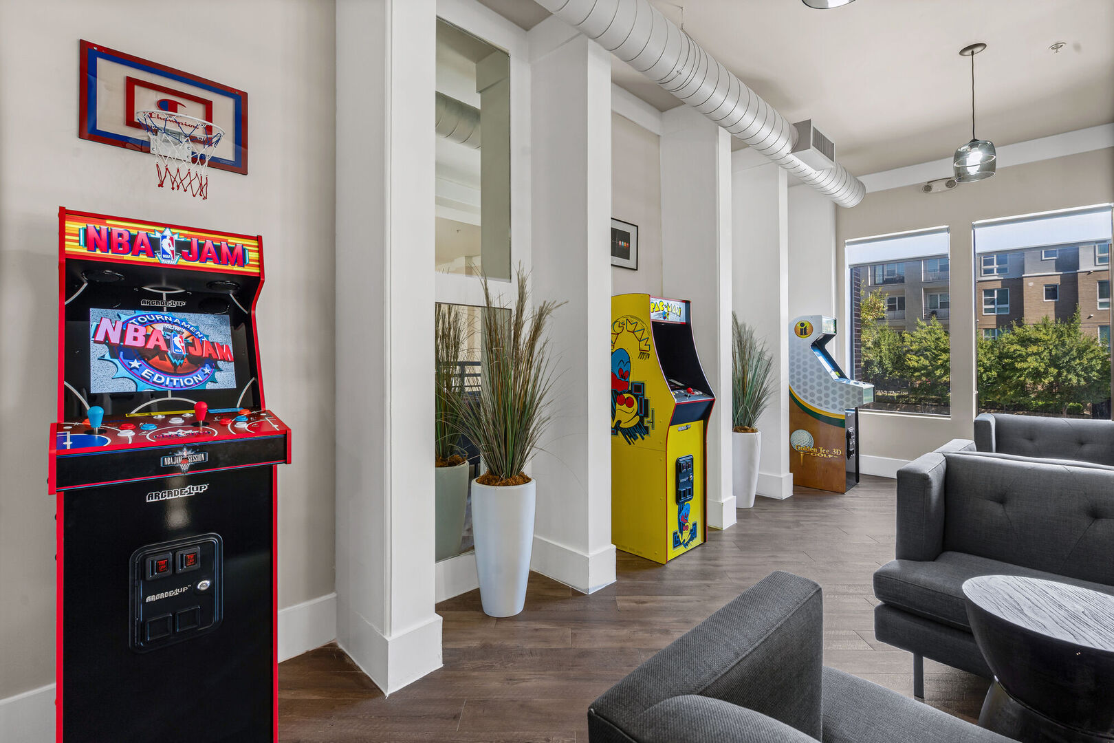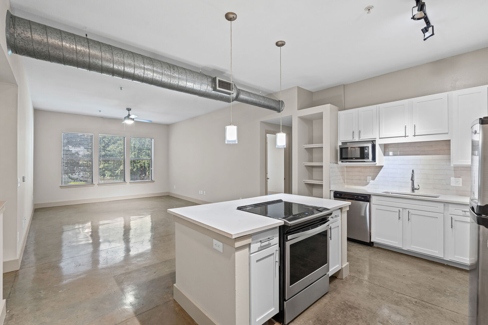 Look through the photo gallery below to see why Lakeshore Lofts is a community you’ll love calling home. Zoom in on all the modern details inside these spacious one-, two- and three-bedroom apartments, from the stunning stainless-steel appliances and granite countertops in the kitchen to the stained concrete flooring and trendy exposed duct work throughout the living areas. In select floor plans, premium features like an expansive kitchen island and a built-in computer desk with bookshelves will further upgrade your lifestyle. As you scroll, you can also keep an eye out for the community’s many top-notch amenities, including two resort-style swimming pools, two 24-hour fitness centers and a serene yoga and meditation studio.